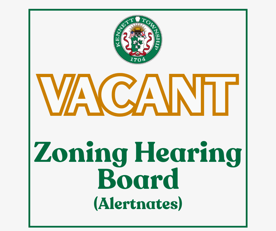 Kennett Township is currently seeking volunteers to fill two (2) Alternate Member vacancies on the Zoning Hearing Board. This board hears and decides requests related to zoning variances, special exceptions, and appeals. Interested candidates are encouraged to submit a Volunteer Form and optional resume to kennett.twp@kennett.pa.us.